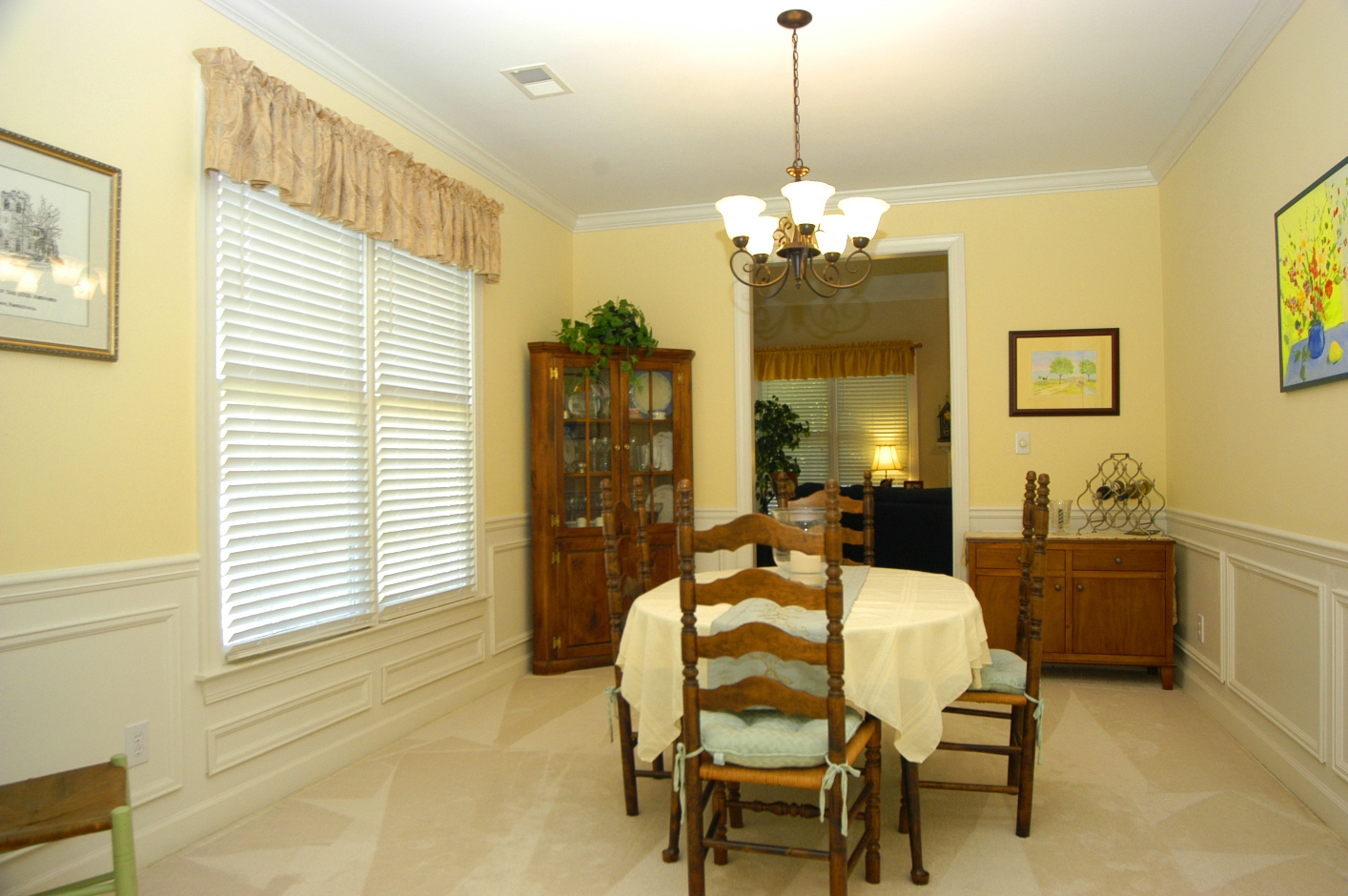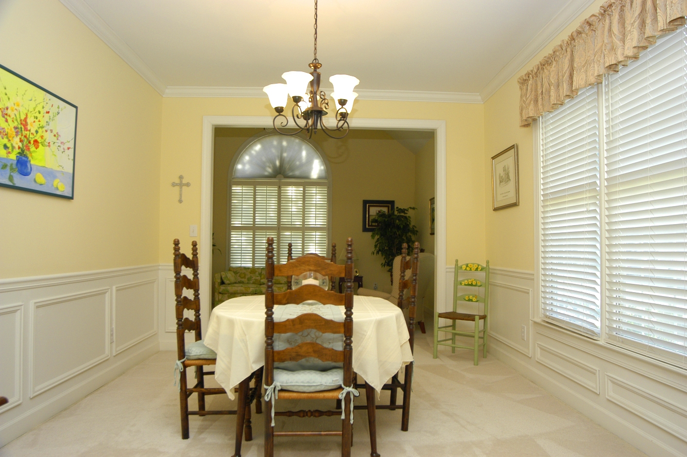 FORMAL DINING ROOM is spacious and easily seats 12+. New chandelier, double window. Neutral carpet. Cased openings to LR,family room.