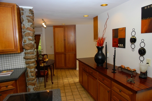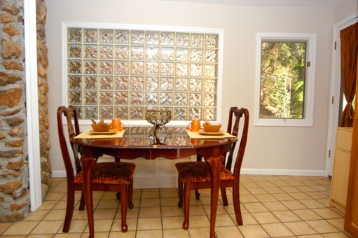 • BREAKFAST ROOM located off Kitchen has a ceramic tile floor, glass block wall, French door to deck. Window, Recessed lighting. Lots of cabinets and storage. Door to hall.