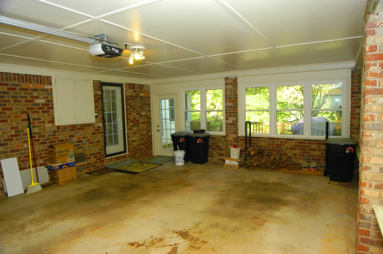 Not your average TWO CAR GARAGE. Spacious carport enclosed with a wall of windows along back wall. Remote controlled overhead garage door. Room for storage.