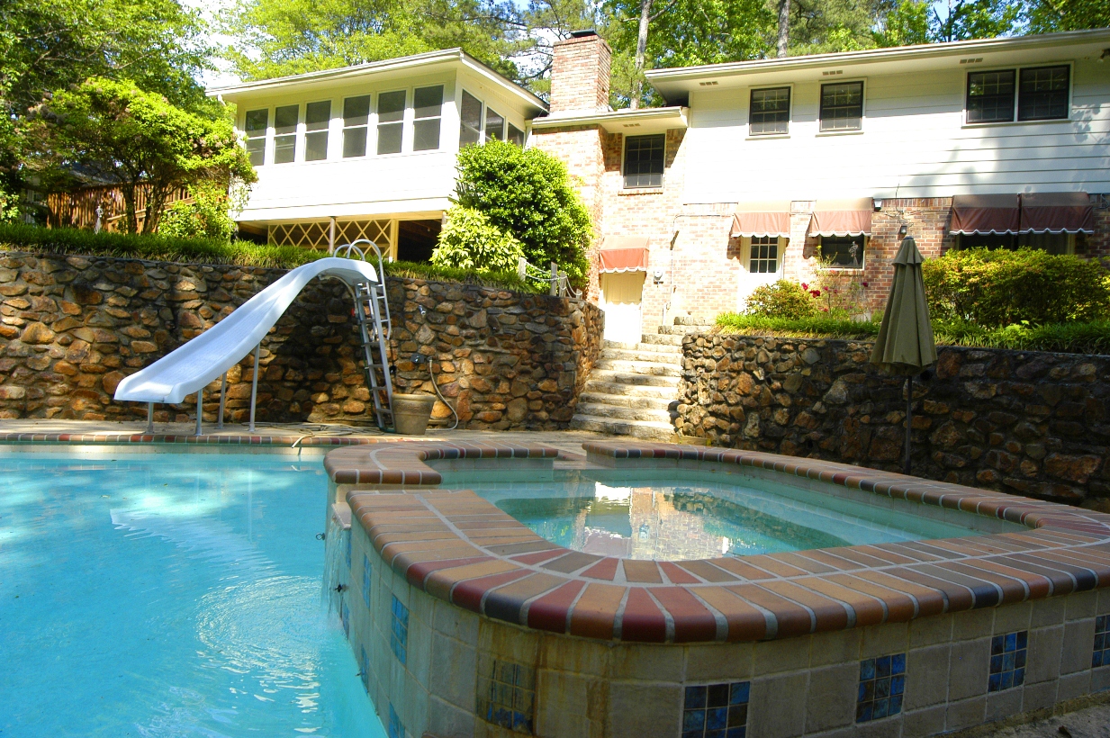 Swimming pool with water slide and hot tub. Private patio. Large deck. Sun room. So many ways to enjoy being outdoors.