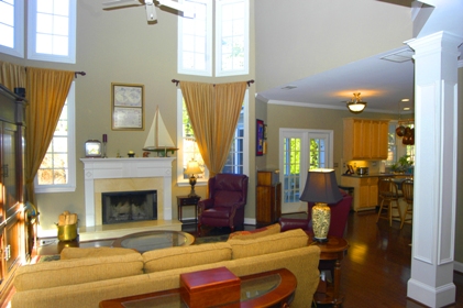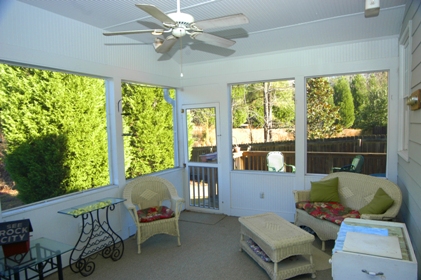 Bedroom and full bath on main floor. Two story ceilings in family room and foyer. Custom built screen porch addition. Master bedroom bumped out 2 feet in length and width to accomodate owners oversize furniture.