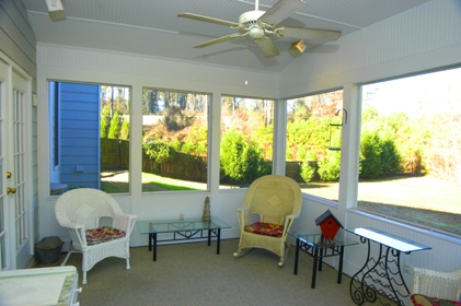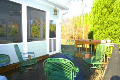 SCREEN PORCH custom built addition one year after purchase. Shaped barrel vault ceiling with bead board paneling and ceiling. Screened walls on three sides. Indoor-outdoor carpet. Overlooks private backyard. Door to deck. Enjoy three seasons of outdoor living.