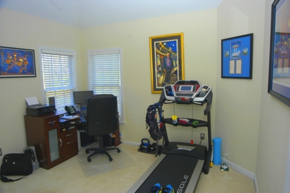 BEDROOM # 5 also used as a home office and exercise room. Neutral carpet, vaulted ceiling, 2 windows.