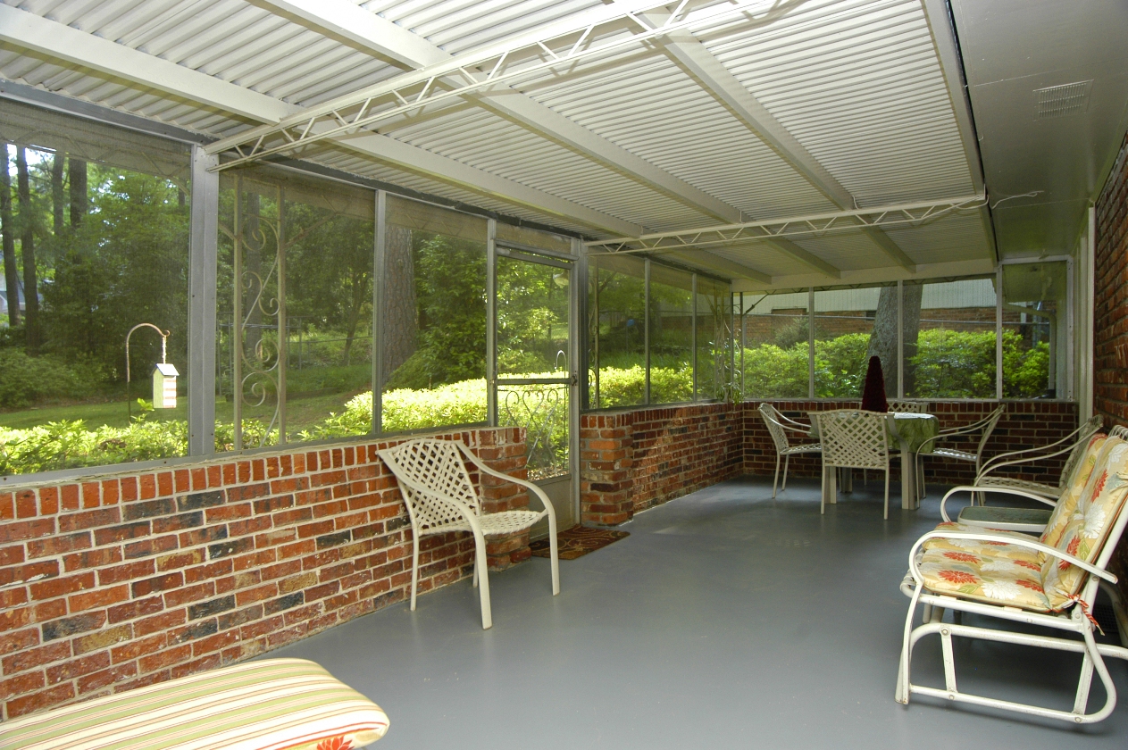 - OVERSIZE SCREEN PORCH has a waist high brick wall and screened panels above. Lovely views of fenced and private back yard. Screen door.
