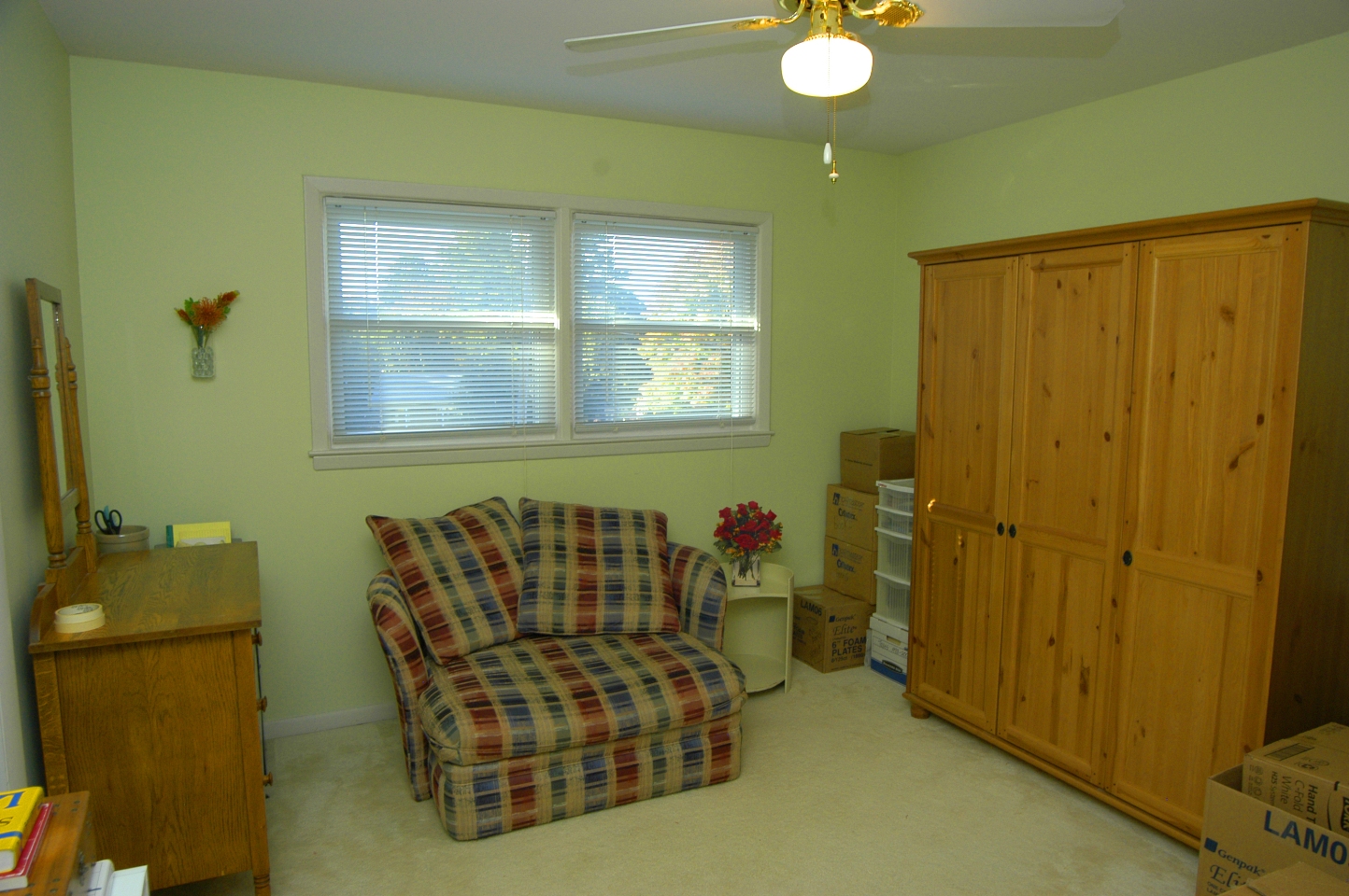 - MASTER BEDROOM features neutral carpet, ceiling fan with light and two windows. Mirrored, double door walk-in closet has lots of space from incorporating closet in adjacent bedroom.