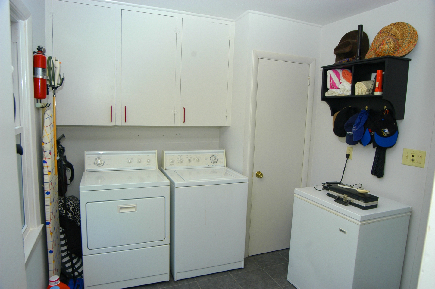 - BREAKFAST ROOM is open to kitchen and has sliding glass door that leads to private back yard and patio with natural gas grill. Ceiling fan and light. Ceramic tile floor. Door to LAUNDRY ROOM. Spacious laundry/mud room has washer-dryer connections, window, door to 2-car garage, coat closet, storage cabinets.