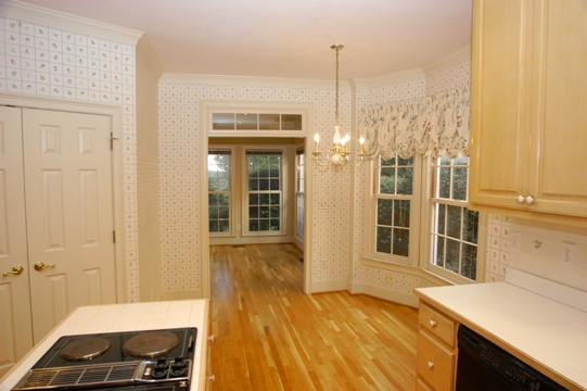 ¨ BREAKFAST ROOM open to kitchen has a large bay window. Cased opening with transom to sun room. Hardwood floors.