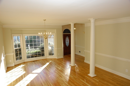 ¨ FORMAL DINING ROOM features newly refinished hardwood floors. Large bay window. Wood columns. Chandelier. Open staircase separates great room and dining room. Passage to kitchen.