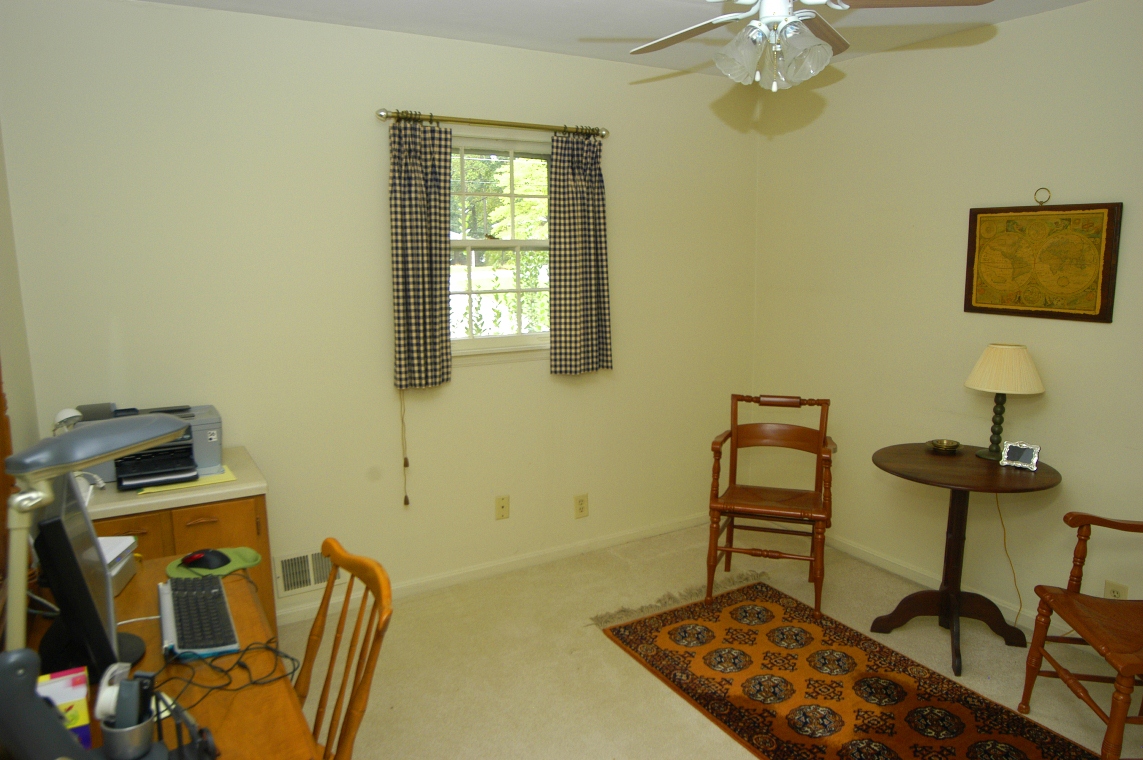 BEDROOM #4 is used as a home office. Also has hardwood floors under neutral carpet, double door closet, ceiling fan.