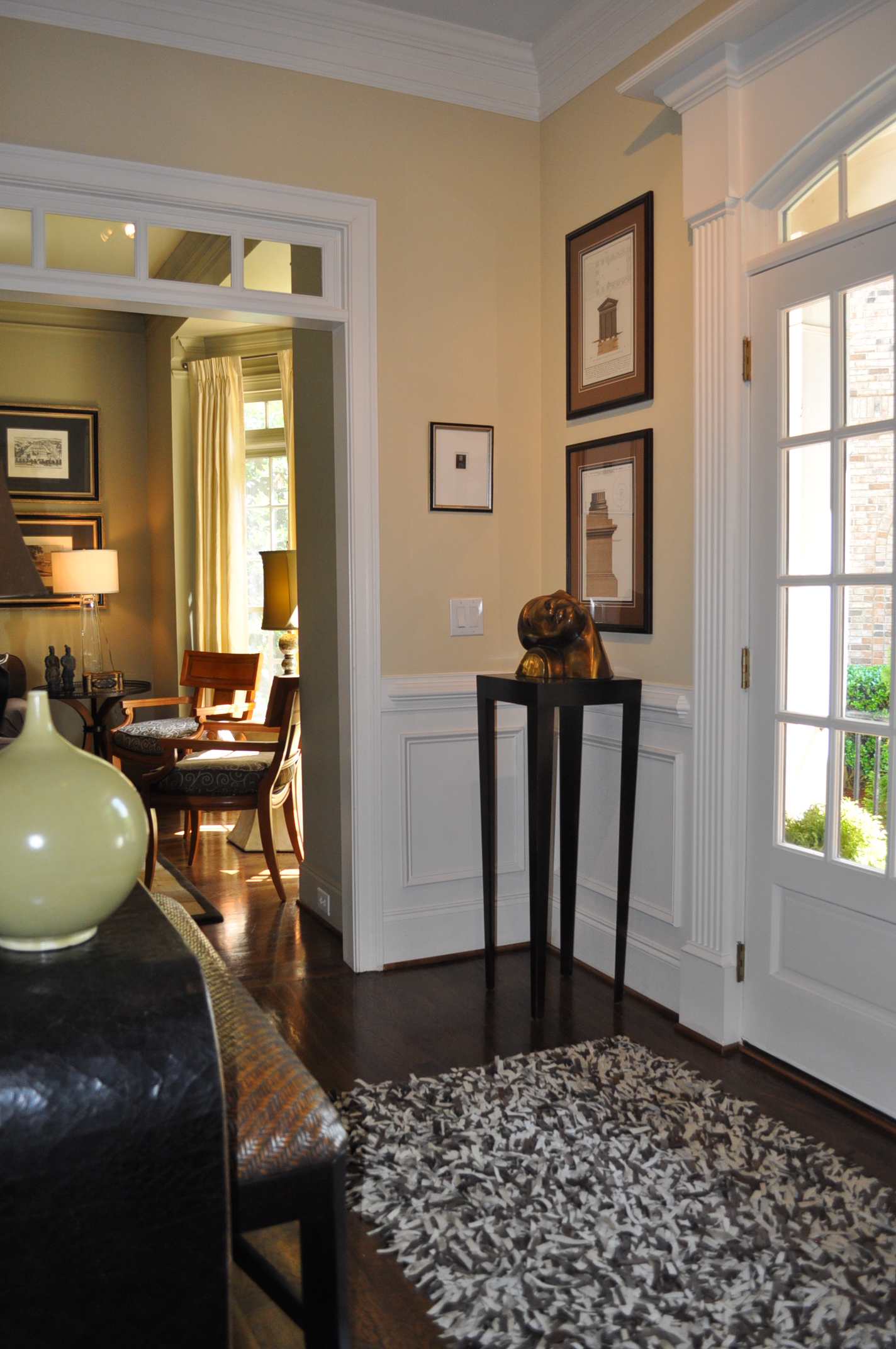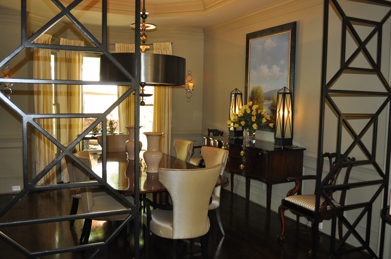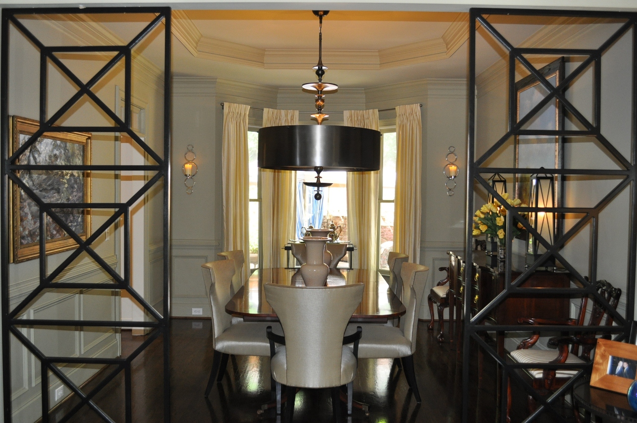 - Bay window in the FORMAL LIVING ROOM achieves a lovely light and highlights detailed wood moldings. A Chippendale style wood screen simultaneously creates openness while separating living and dining areas.