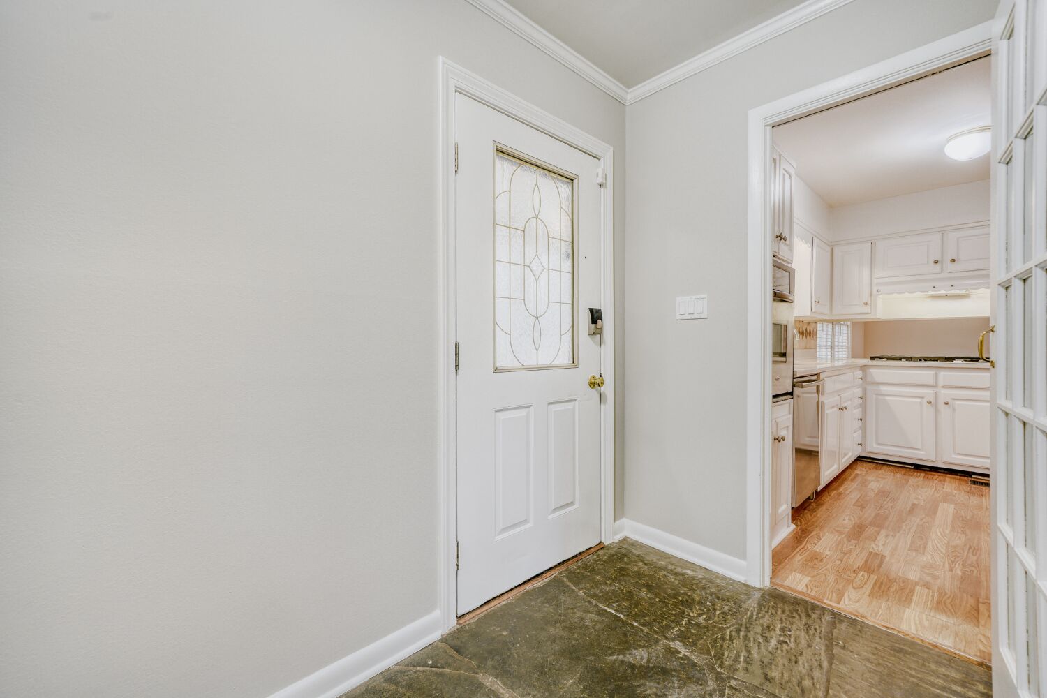 The entry hall features a slate stone floor.